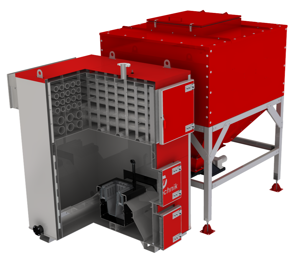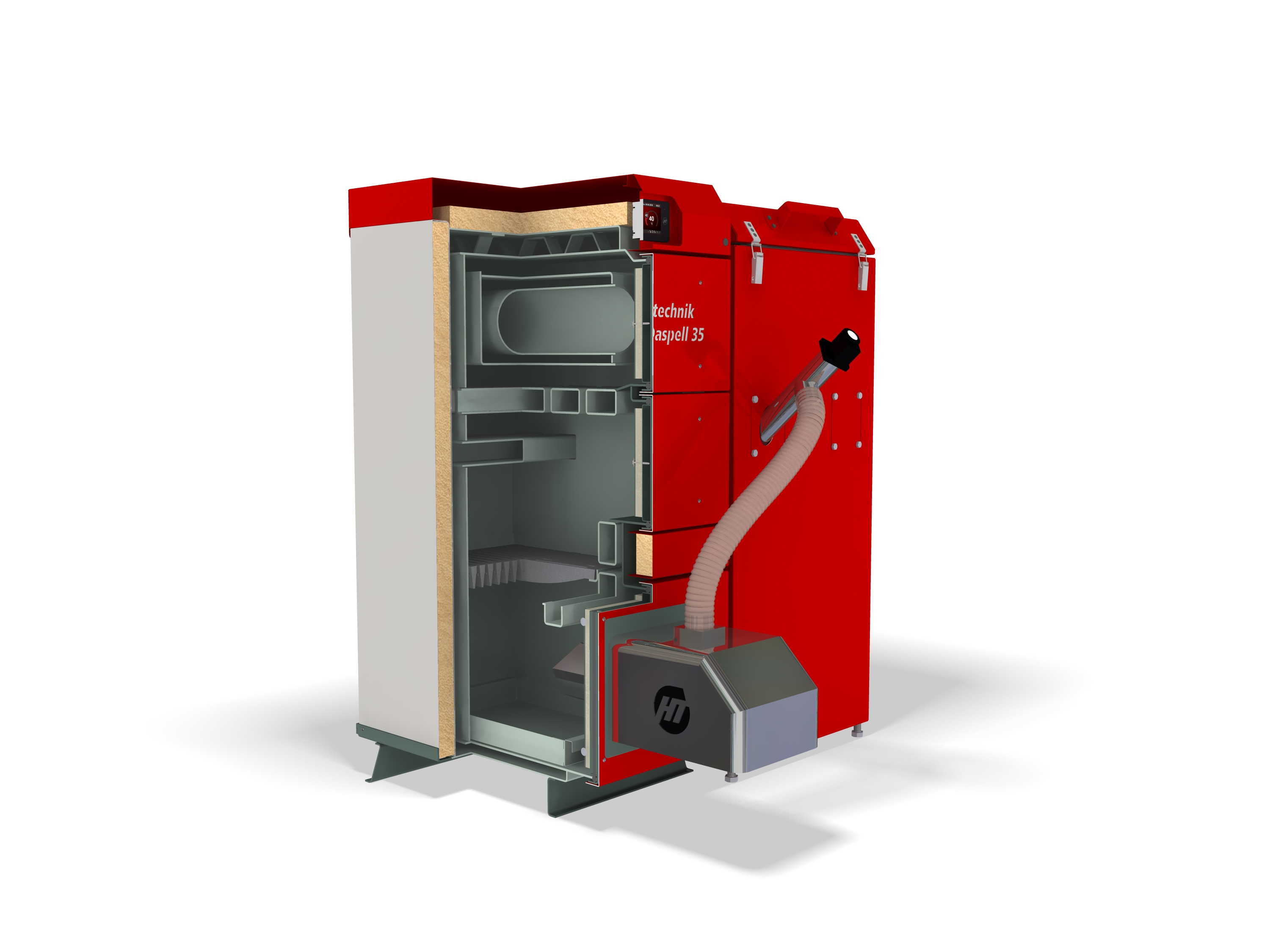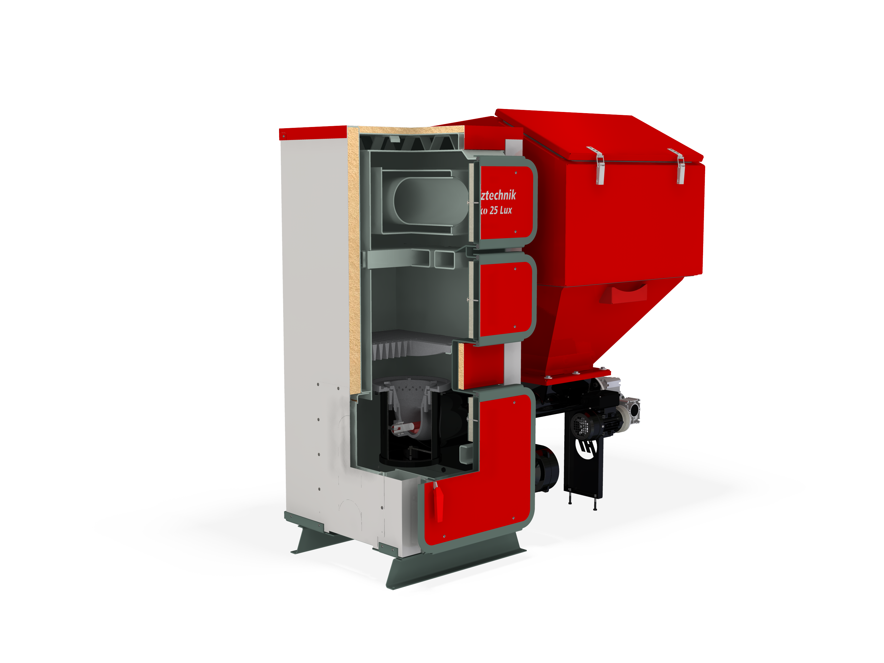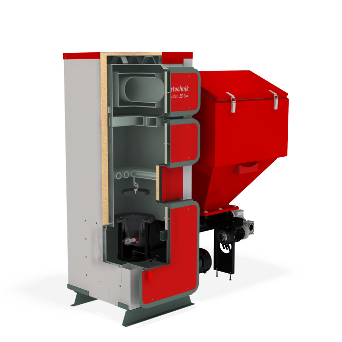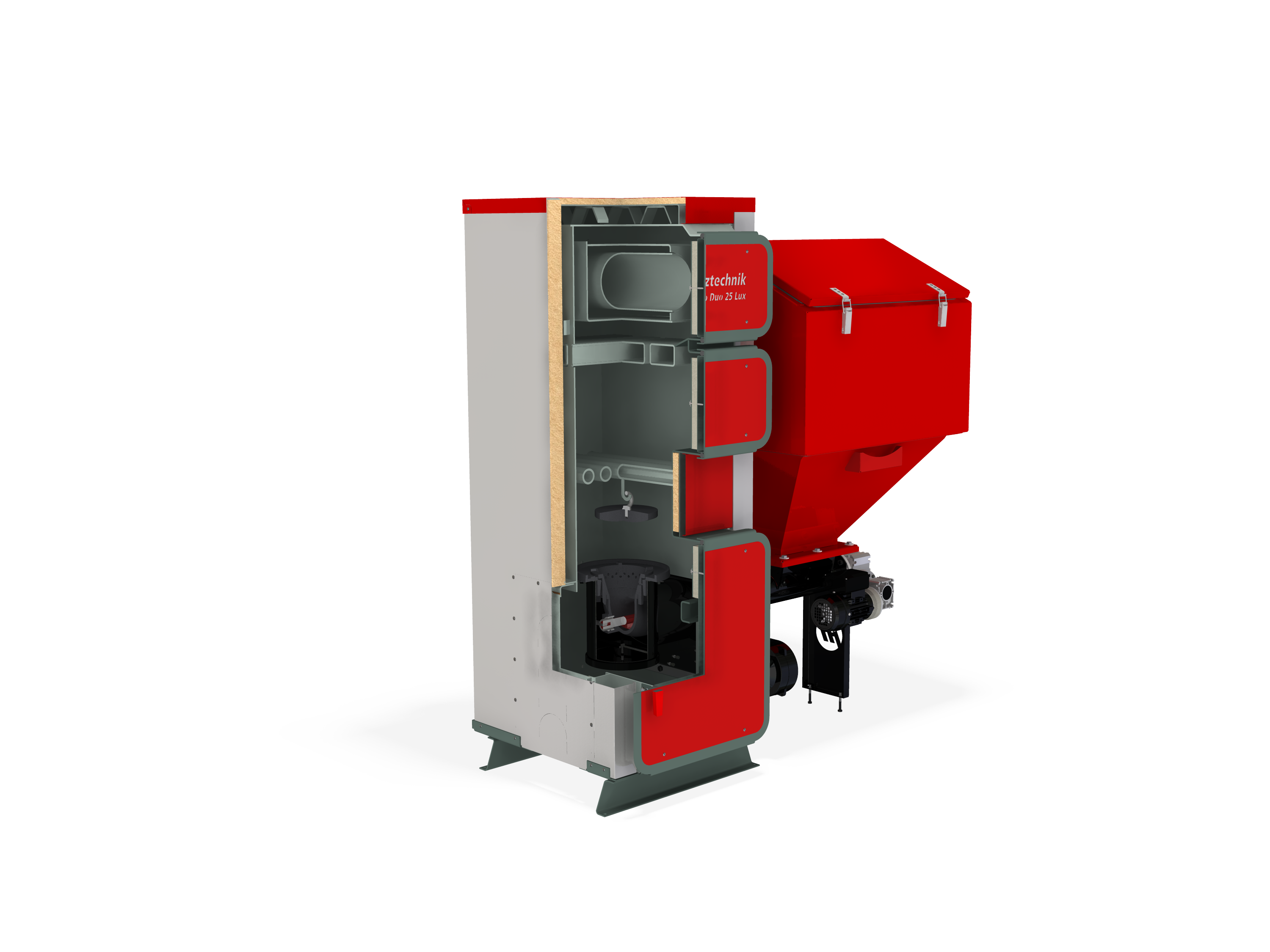 Топливо автоматически подаётся в зону горения (пеллеты, в т.ч. агропеллеты).