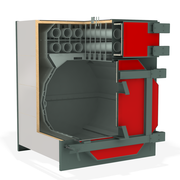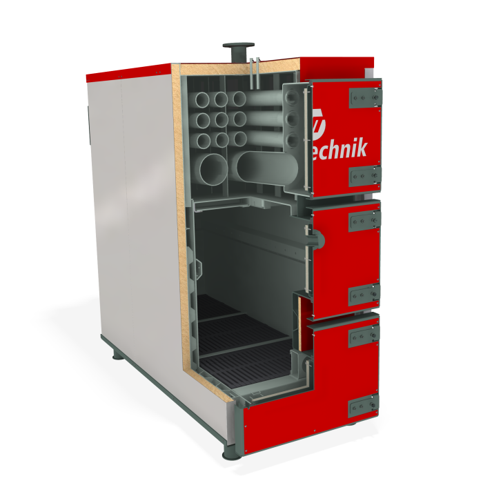 Топливо закладывается "в ручную" (уголь, дрова, брикеты).
